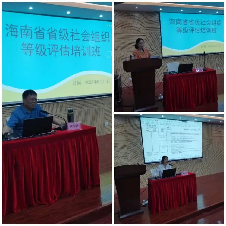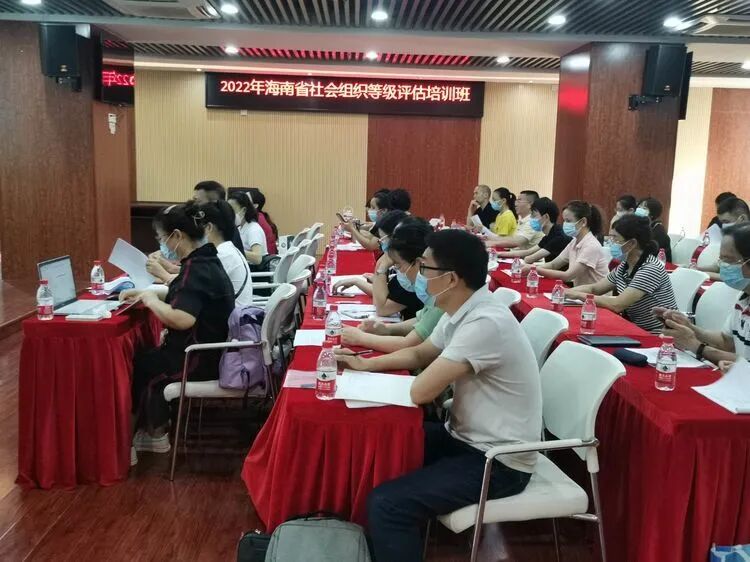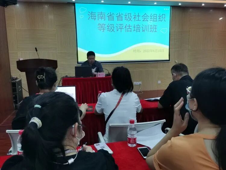 培训内容为《2022年海南省社会团体等级评估指标》、《2022年海南省社会服务机构等级评估指标》、《2022年海南省基金会等级评估指标》、等级评估流程与安排、评估材料制作进行讲解。